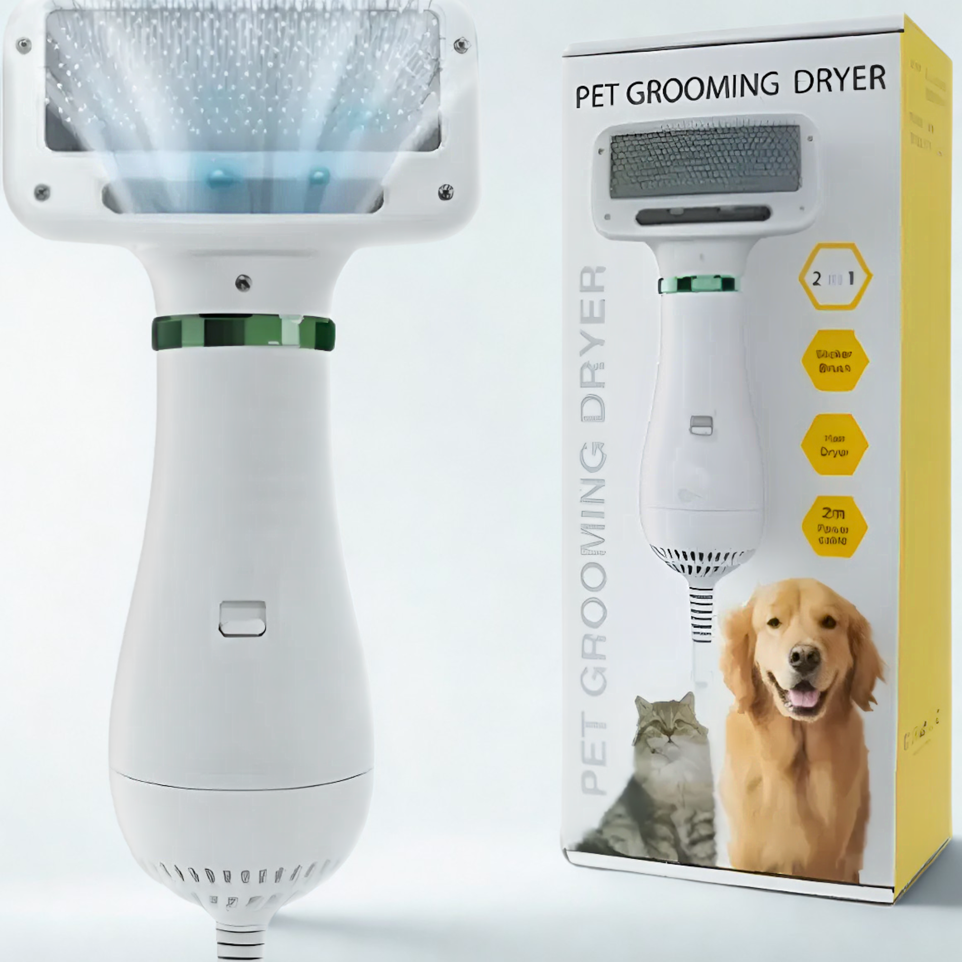 ¡Invierte en el confort de tu compañero peludo y en tu tiempo libre! Añade el Cepillo Secador 2 en 1 al carrito y disfruta de un pelaje impecable sin dramas.