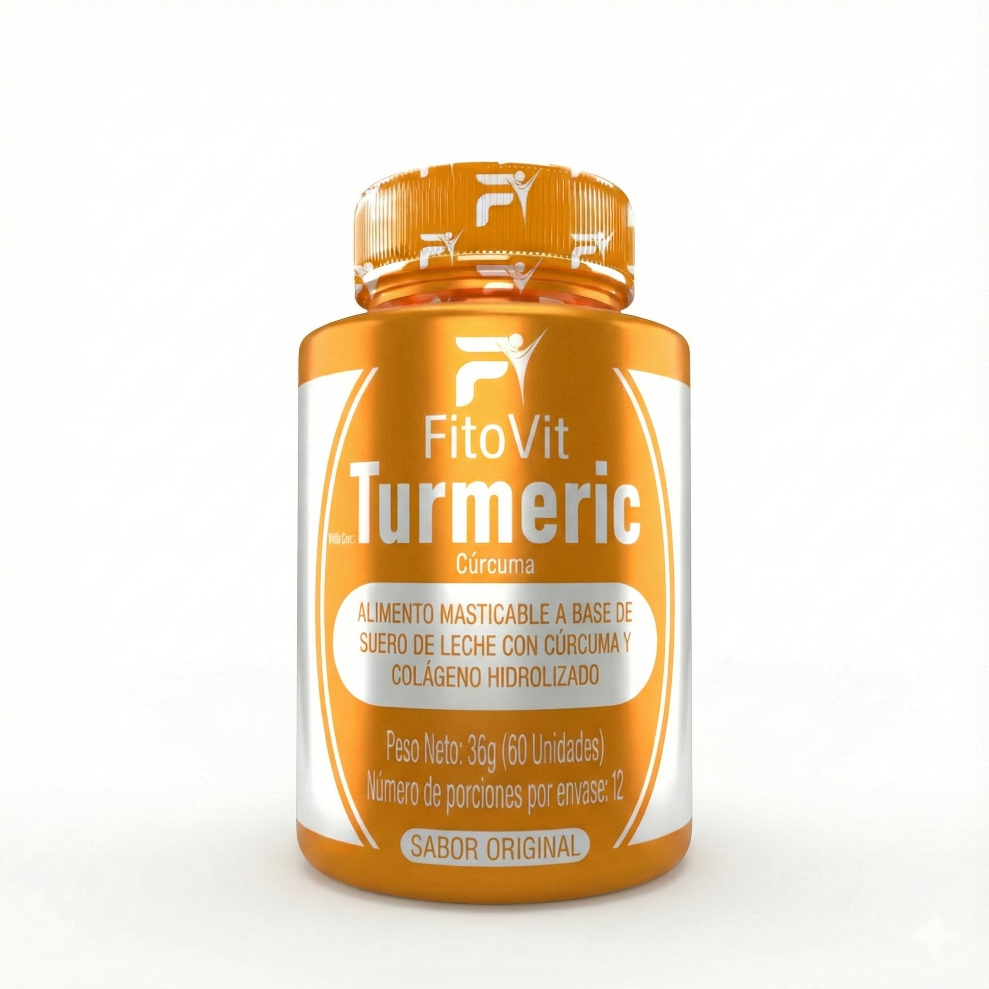 La Cúrcuma Fitovit en formato masticable es la forma más práctica y deliciosa de cuidar tu cuerpo de forma integral. Esta fórmula premium combina el potente efecto antiinflamatorio de la Cúrcuma con el poder regenerativo del Colágeno Hidrolizado, ofreciéndote alivio en las articulaciones y una piel más saludable.